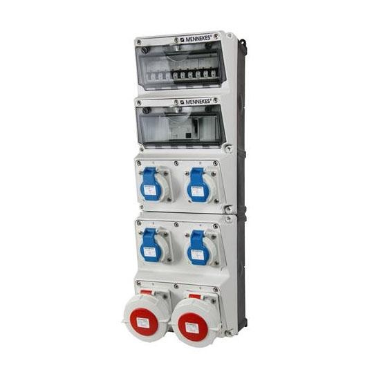 CAJA COMBINADA IP67 2 TOMACORRIENTES 32A 3P+N+T 400V CON 2 INTERRUPTORES TERMOMAGNÉTICOS 3X32A + 4 TOMACORRIENTES SCHUKO